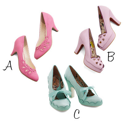 I love all three pairs of these springy heels! BAIT Footwear and Miss L-Fire are two of the best retro-inspired shoe brands out there, in my opinion. I'm especially crushing on those mint ones! These cherry wedges are also by Miss L-Fire, and they are a thing of beauty: